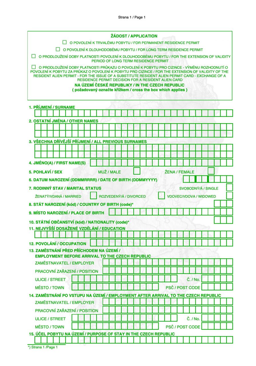 Žádost o vydání a prodloužení doby platnosti povolení k dlouhodobému pobytu
